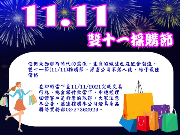 首頁 » 最新公告 » 優惠通知~雙十一採購節