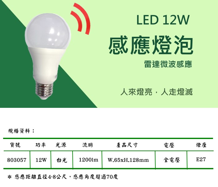 • LED 12W雷達感應球泡燈