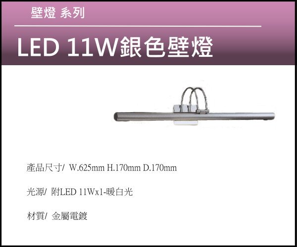 • LED 11W銀色壁燈 暖白光