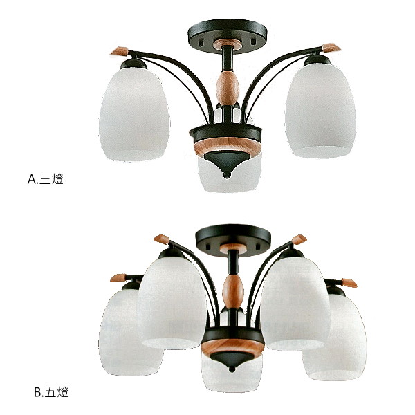 • 三燈/五燈 木製吸頂燈 燈具