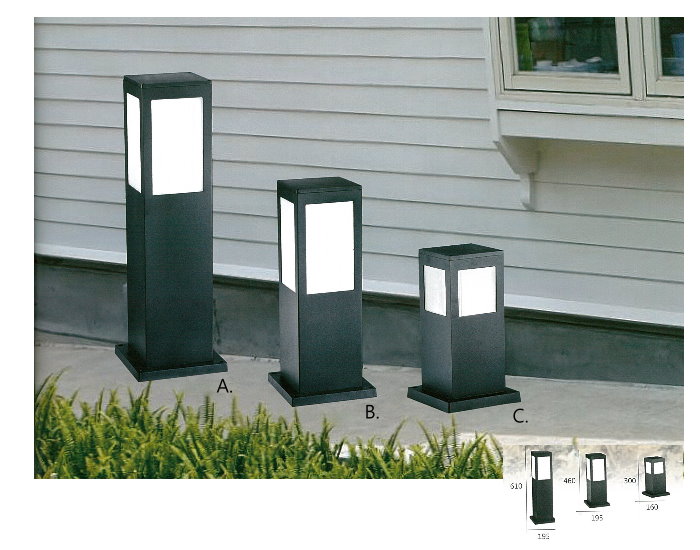 產品尺寸:A.□:150mm H.610mm 底座□:195mm B.□:150mm H.460mm 底座□:195mm C.□:120mm H.300mm 底座□:160mm