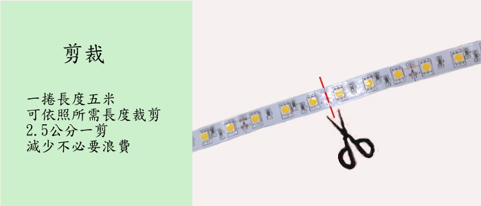 LED數量 : 每公尺120顆LED,一捲共600顆LED